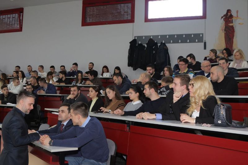 Uvodnu reč imao je doc. dr Predrag Mirković, prodekan za nastavu na Pravnom fakultetu koji je izrazio zadovoljstvo zbog posete Gujona Pravnom fakultetu i dodelio mu zahvalanicu za održanu tribinu ispred Univerziteta Privredna akdemija u Novom Sadu.