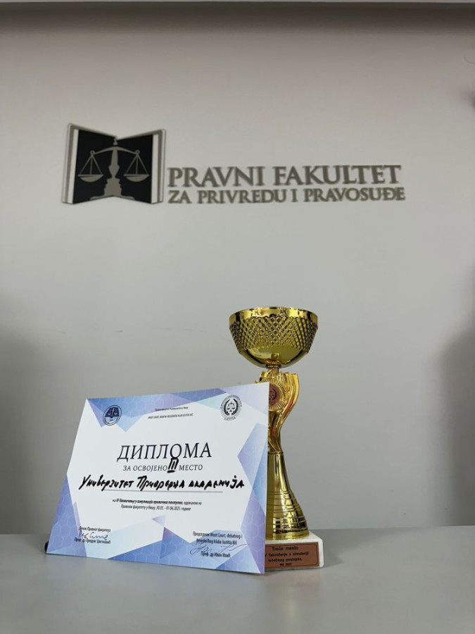 Na Pravnom fakultetu za privredu i pravosuđe organizovan je svečani prijem za studente koji su osvojili treće mesto na prestižnom takmičenju u simulaciji glavnog pretresa u krivičnom postupku, u organizaciji Moot Court, debatnog i besedničkog kluba „Iustitia“.