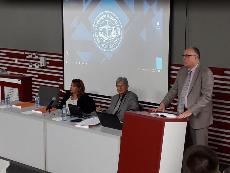 U amfiteatru Pravnog fakulteta za privredu i pravosuđe u Novom Sadu, 24.5.2019. godine, Slobodanka Gutović, sudija Višeg suda u Novom Sadu, gospodin Zoran Jovanović, penzionisani upravnik Okružnog zatvora i gospodin Miroslav Alimpić, sudija Apelacionog suda u Novom Sadu i vršilac funkcije predsednik višeg suda u Šapcu ućestvovali su u tribini pod nazivom ,,Društvo i kaznena politika“.
