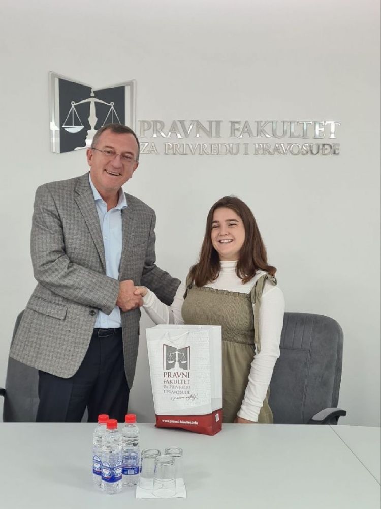 Studentkinji je uručen prigodan promotivni poklon Pravnog fakulteta za privredu i pravosuđe sa nadom da će najlepše utiske poneti sa Fakulteta, kako je i sama napomenula.