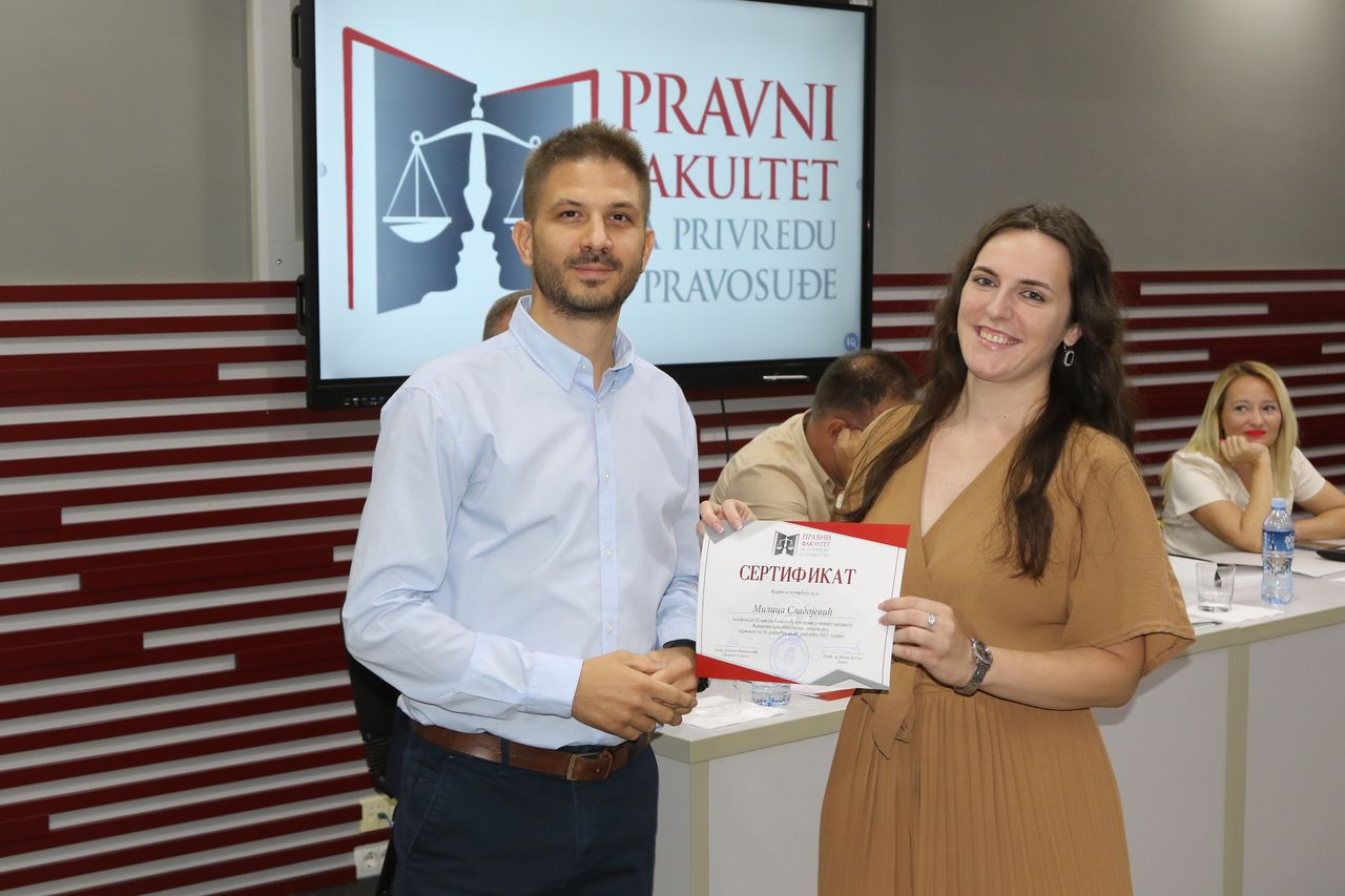 Prisutne studente pozdravili su dekan Pravnog fakulteta za privredu i pravosuđe, prof. dr Milan Počuča, sudija Apelacionog suda u Novom Sadu, dr Vidoje Mitrić, kao i nosilac predmeta Krivično procesno pravo i organizator studentske prakse, Case study programa i tribine, prof. dr Jelena Matijašević. Istaknut je veliki značaj studentske prakse u pravosuđu, kao i svih mogućnosti dodatne edukacije u saradnji sa sudovima, tužilaštvima i advokatskim kancelarijama u Srbiji. Pored dr Vidoja Mitrića, sertifikate su uručili Maja Deman, viši sudijski pomoćnik u Višem sudu u Novom Sadu i Milan Sremčev, tužilački pomoćnik u Višem javnom tužilaštvu u Novom Sadu.