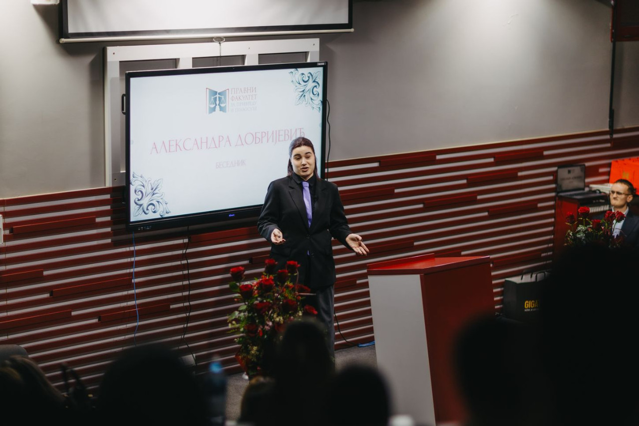 Prisutne je pozdravila prof. dr Jelena Stojšić Dabetić, dekan Pravnog fakulteta za privredu i pravosuđe, dok se u ime organizacionog tima, obratio se prof. dr Nenad Stefanović, koji je istakao važnost ne samo kvalitetnog govora za sve pravnike, već i razumevanje zadate teme.